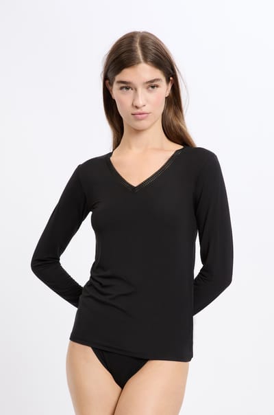 Thermal boat neck t-shirt with cashmere;${refinementColor}